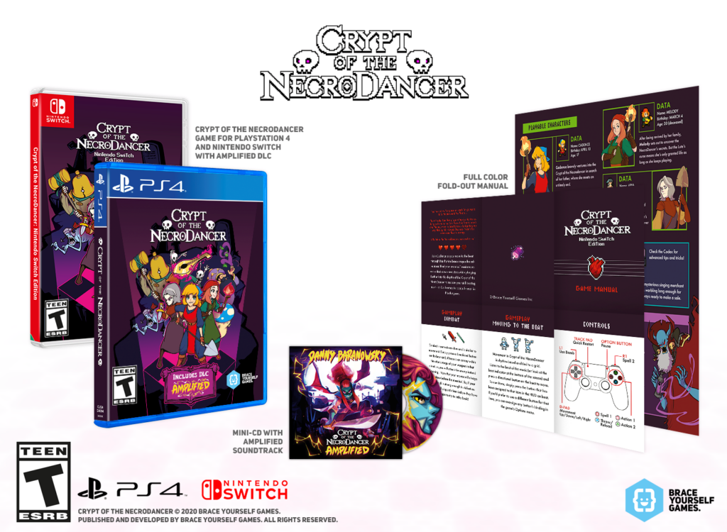 From the creators of Cadence of Hyrule, Crypt of the NecroDancer is an award winning hardcore rhythm-based dungeon crawling game. After 5 years, you can finally deliver beatdowns to the beat again. Reclaim your still-beating heart with a glorious Physical and Collector’s Edition of Crypt of the NecroDancer, including “AMPLIFIED” DLC for the Nintendo Switch and PlayStation 4! These editions feature a full color pull-out manual with character info and all-new artwork, as well as a mini-CD which includes AMPLIFIED tracks never before released physically.